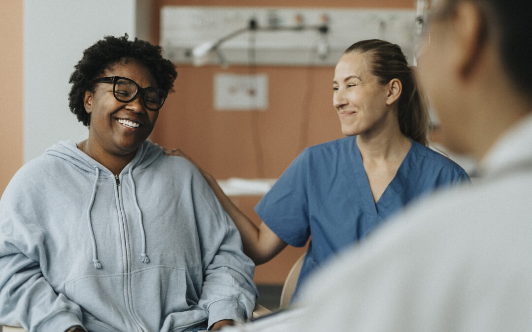 Smiling female nurse consoling happy patient sitting with doctor during consultation at hospital by Eureka Amor | Mar 10, 2026