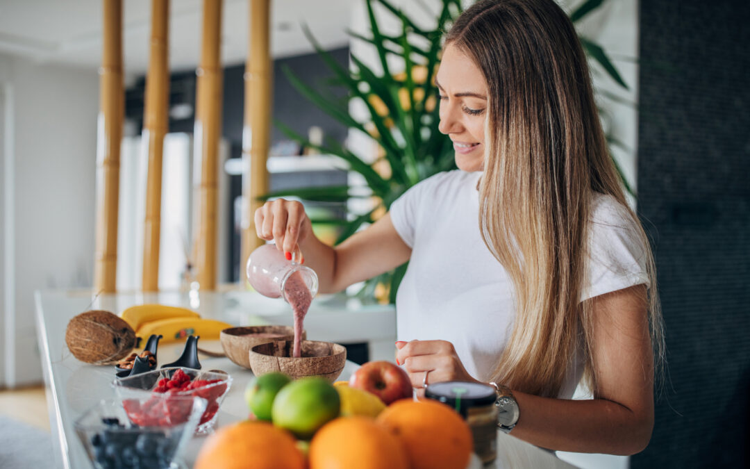 Beautiful woman preparing healthy breakfast